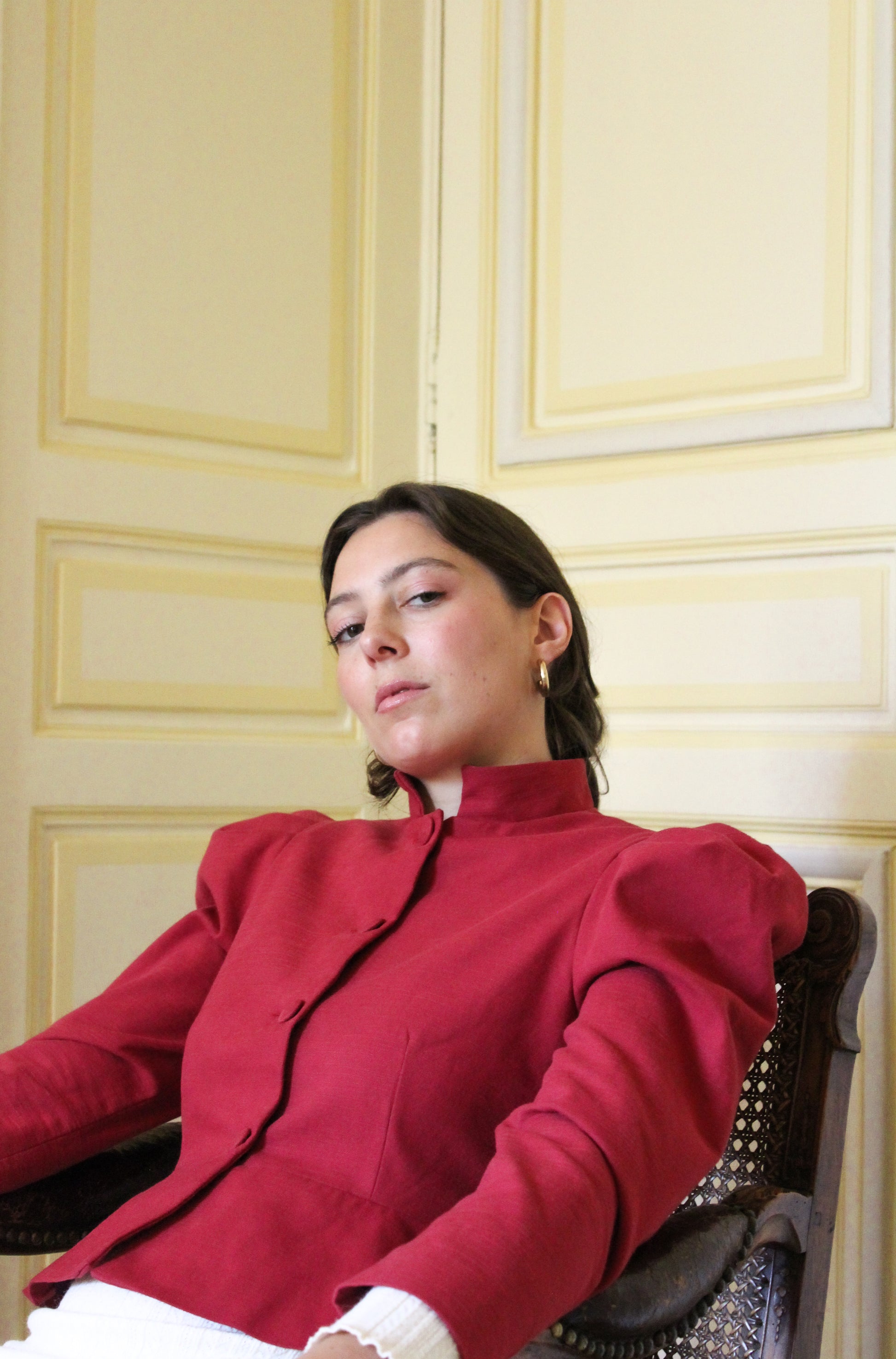 The Peony Jacket's pure cotton carries both comfort and presence. Its sculpted volume recalls a vintage elegance, reimagined with modern and colorful vibes.